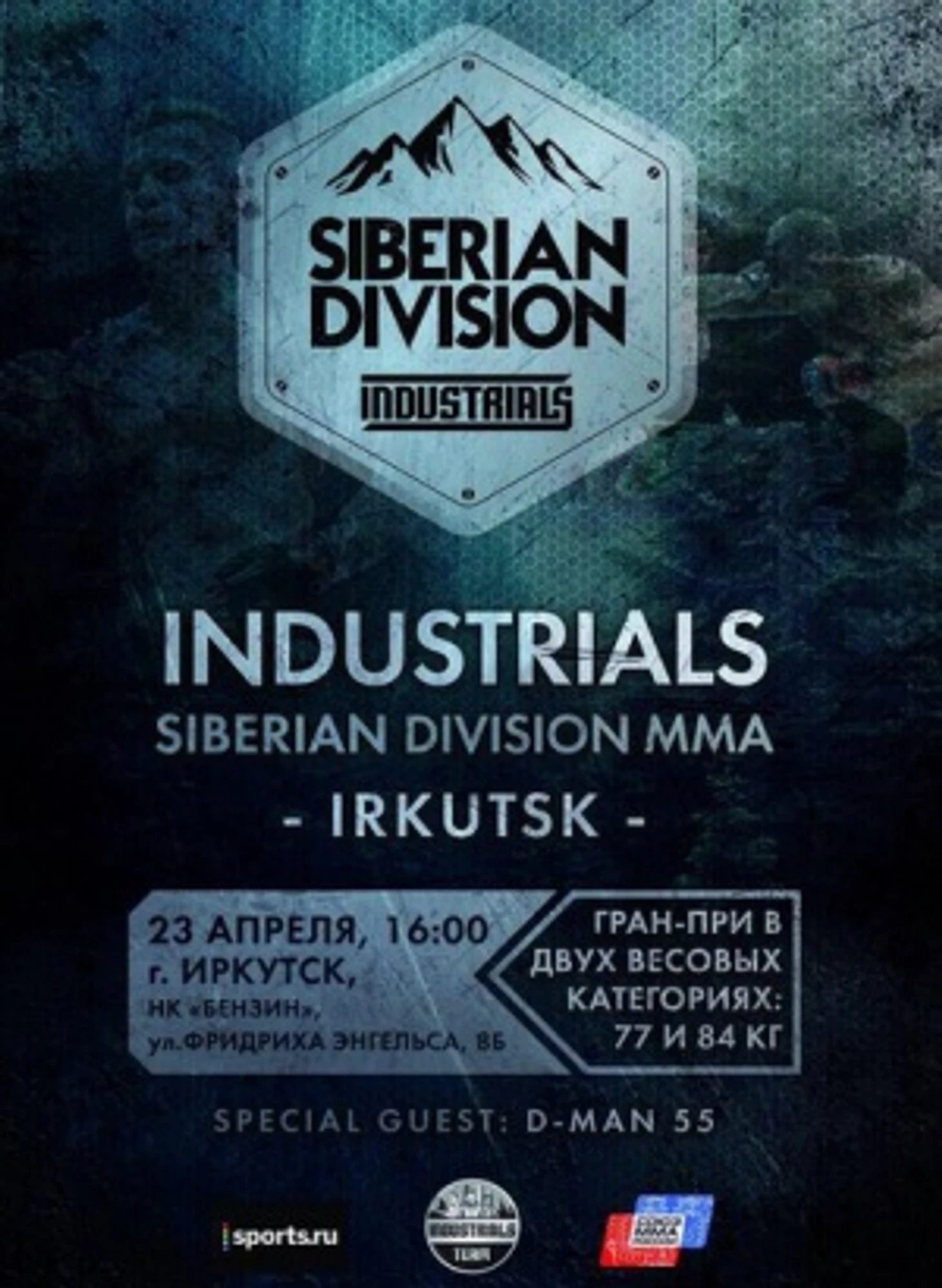 В Иркутске 23 апреля пройдет турнир Industrials Siberian Division, в рамках которого состоится Гран-при в двух весовых категориях: до 77 и до 84 килограммов. Лучшим достанется чемпионский пояс, денежный чек и возможность начать свою профессиональную карьеру в ММА вместе с командой Industrials, представители которой сейчас успешно выступают на крупных российских и международных турнирах. Среди них Никита Крылов (UFC), Анастасия Янькова (Bellator), Алексей Махно (М-1) и Сергей Хандожко (ACB).