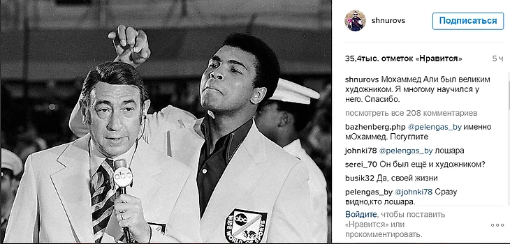 «Мохаммед Али был великим художником. Я многому научился у него. Спасибо», – написал Шнуров.