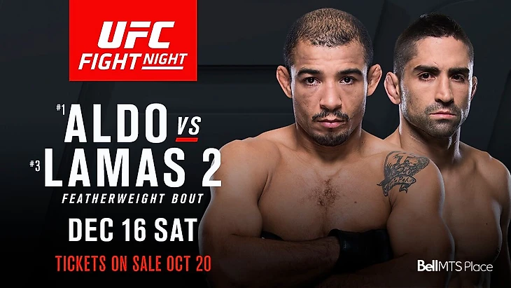 Экс-чемпион UFC в полулегком весе Жозе Альдо проведет реванш против Рикардо Ламаса на турнире UFC on Fox 26, который состоится 16 декабря в Виннипеге (Канада). Главный бой вечера – поединок экс-чемпионов Рафаэля Дос Аньоса и Робби Лоулера.