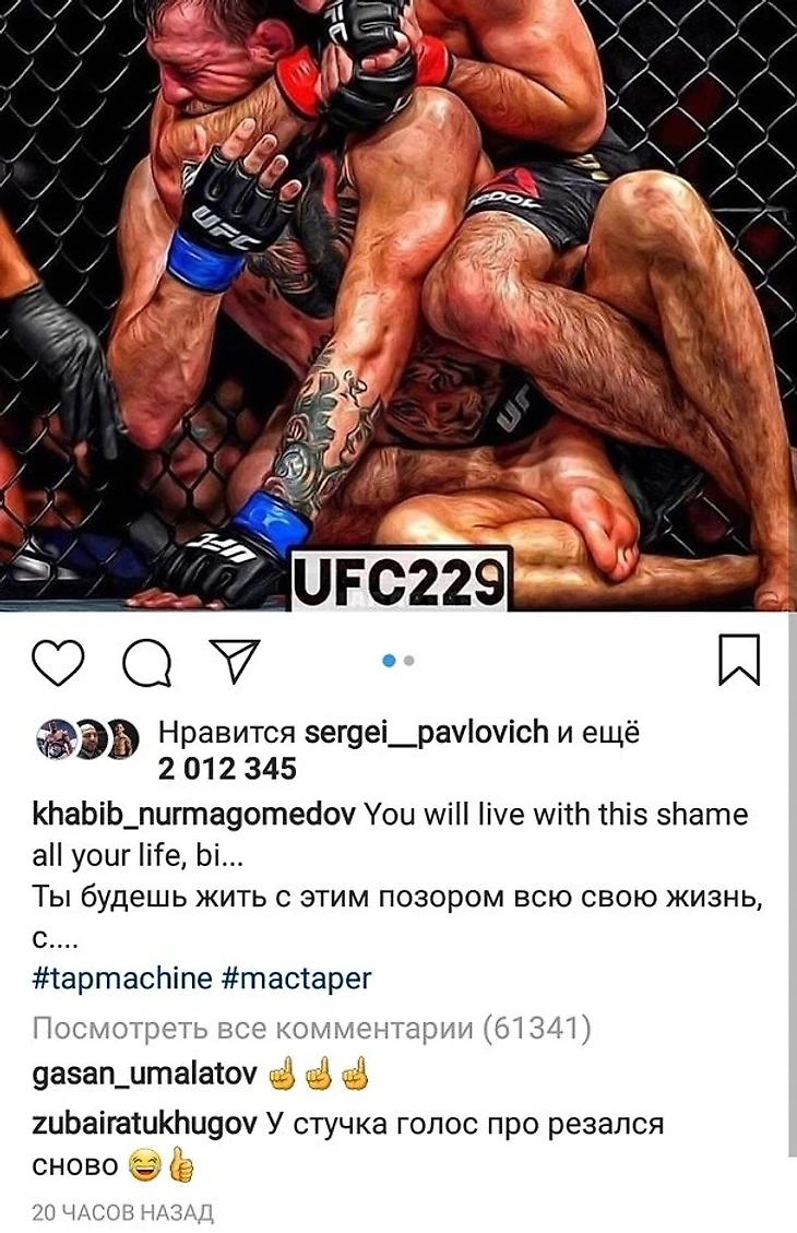 Боец UFC Зубайра Тухугов прокомментировал пост Хабиба в инстаграме, опубликованный в ответ Конору Макгрегору.
