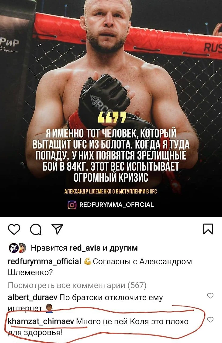 Чимаев – Шлеменко: «Много не пей, это плохо для здоровья!»