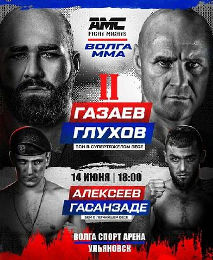 Вечером 14 июня 2023 года в спортивном комплексе «Волга-Спорт-Арена» пройдет турнир российской лиги по смешанным единоборствам AMC Fight Nights 120. В главном событии состоится бой в тяжелом весе между Михаилом Газаевым и Константином Глуховым.
