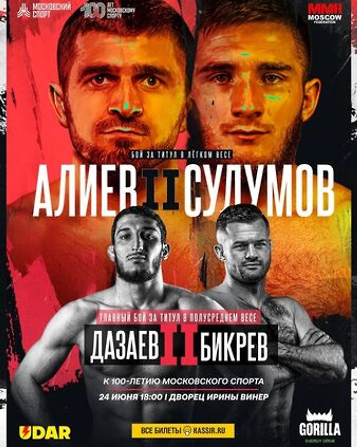 Вечером 24 июня 2023 года в спортивном комплексе «Волга-Спорт-Арена» пройдет турнир российской лиги по смешанным единоборствам AMC Fight Nights 121. В главном событии состоится бой между Ахмедом Алиевым и Магомедом Сулумовым. Бойцы сразятся за титул чемпиона AMC FN в легком весе. А в со-главном бою в октагоне встретятся Дмитрий Бикрев и Алексей Махно. Им предстоит сразиться за титул чемпиона в полусреднем весе.