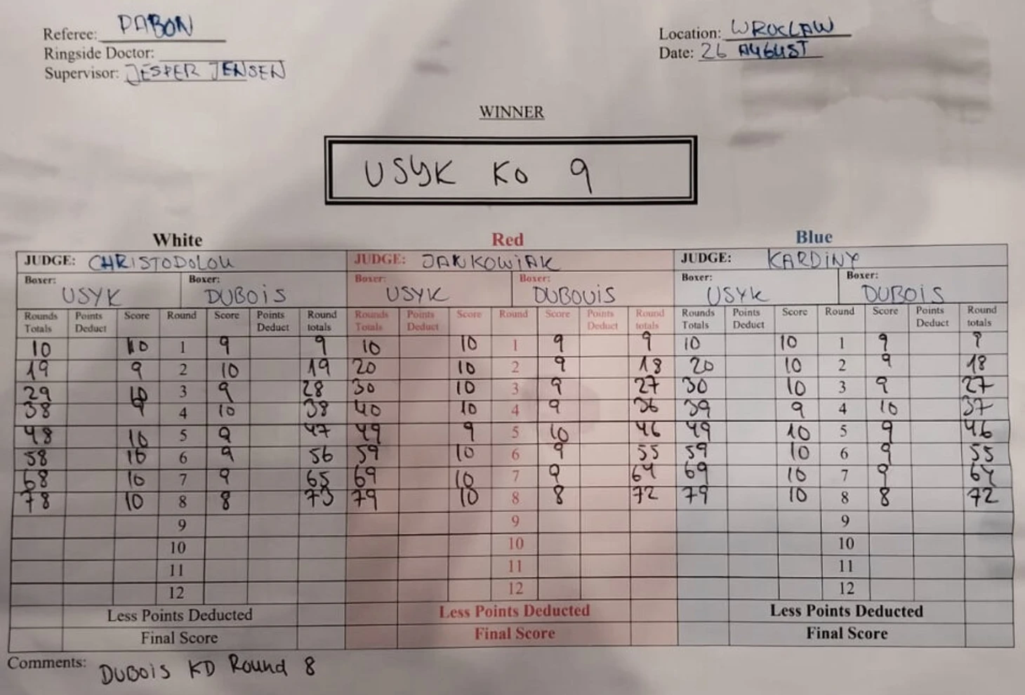 Стали известны судейские записки поединка Усик – Дюбуа.