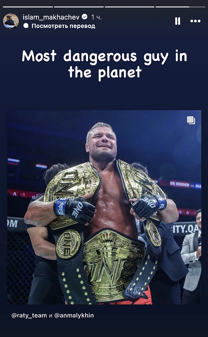 Махачев – о фото Малыхина с тремя поясами ONE: «Самый опасный парень на планете»
