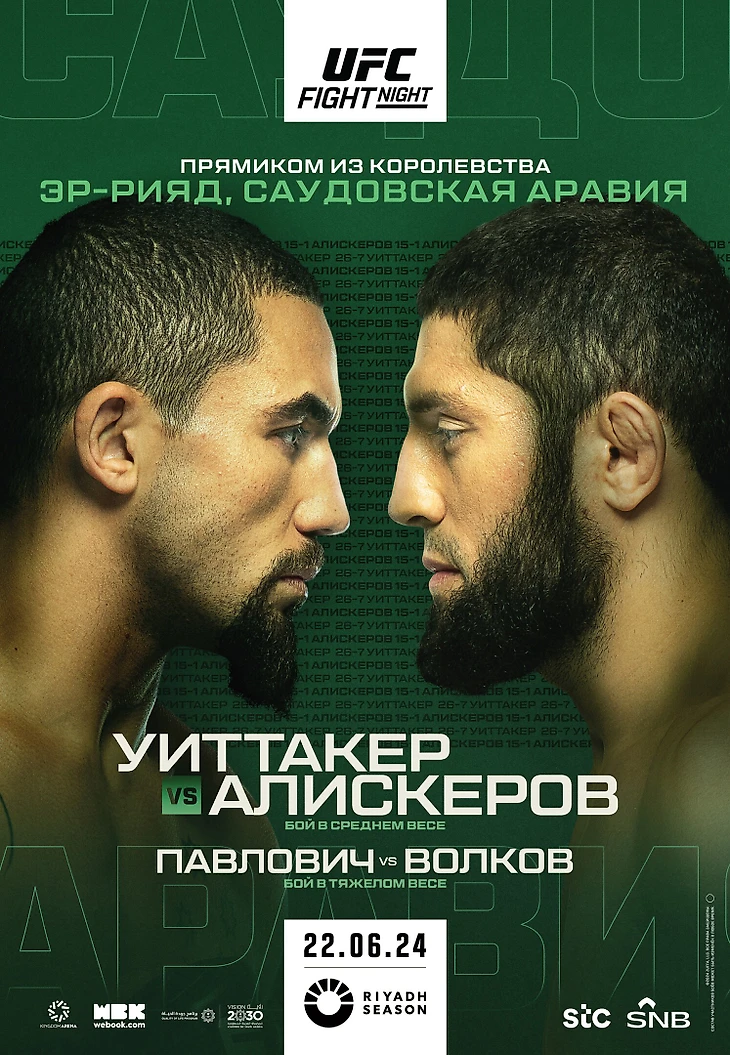 Представлен обновленный постер турнира UFC в Эр-Рияде: Уиттакер – Алискеров