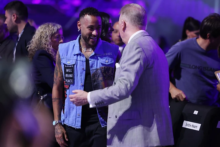 Нападающий «Аль-Хилаля» Неймар занял место в зале возле промоутера Фрэнка Уоррена и боксера Конора Бенна.