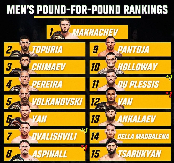 Чемпион полусреднего дивизиона UFC Ислам Махачев сохранил первую строчку рейтинга лучших бойцов промоушена вне весовых категорий по итогам 2025 года.