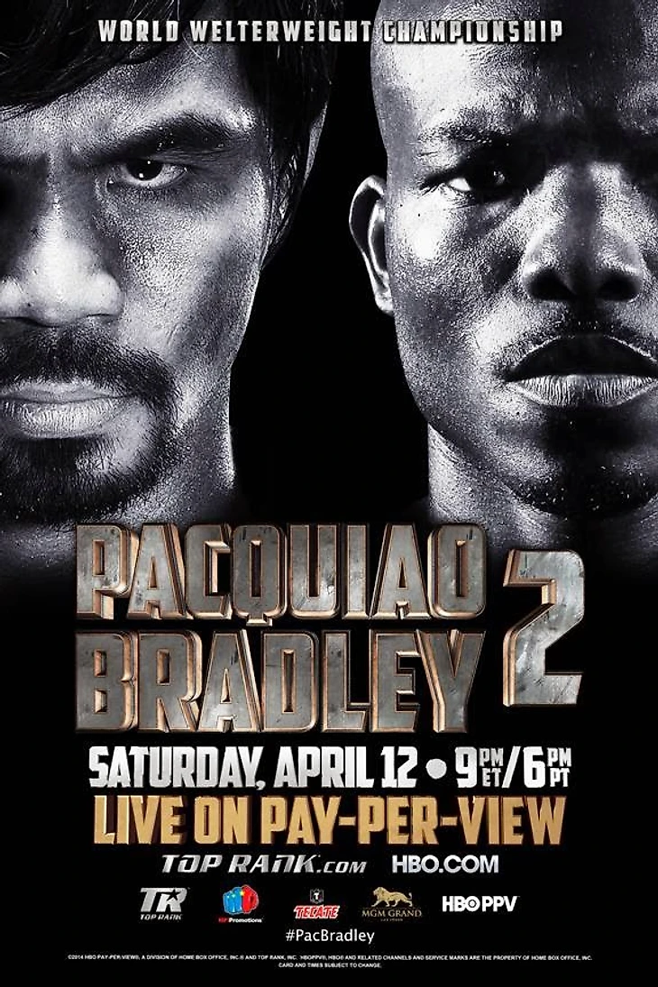 Официальный постер к поединку между чемпионом мира по верисии WBO в полусреднем весе Тимоти Брэдли (31–0, 12 КО) и экс-чемпионом Мэнни Паккьяо (55–5–2, 38 КО), который состоится 12 апреля.