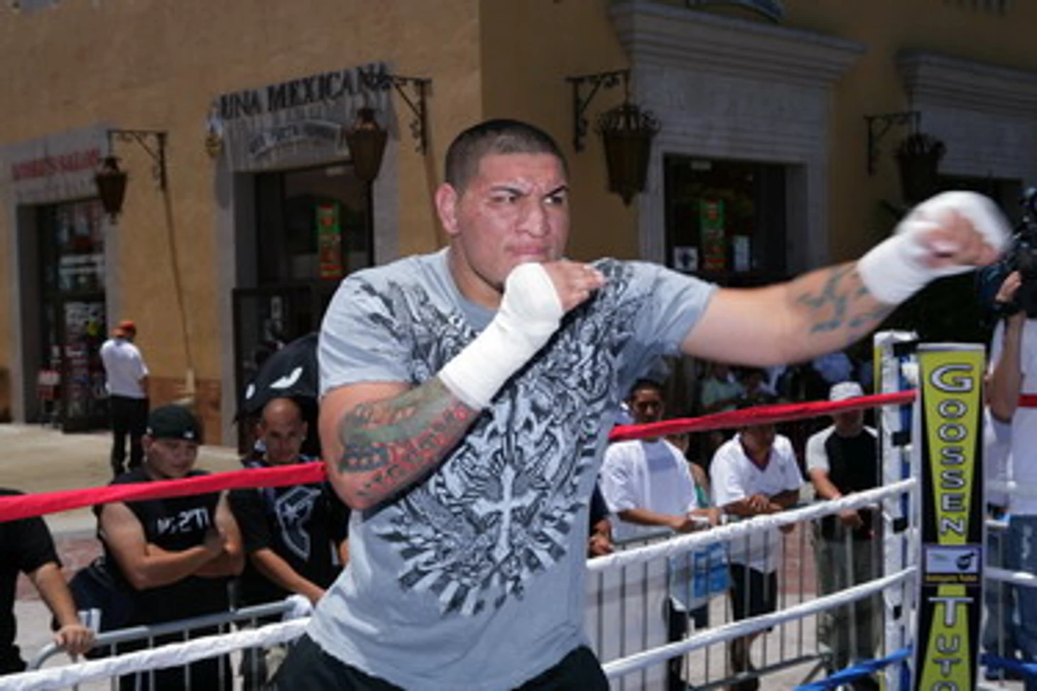 Не имеющий поражений перспективный американский супертяжеловес Крис Арреола провел открытую тренировку в преддверии боя 14 июля против Дерека Берри (Фото Яна Сандерса).