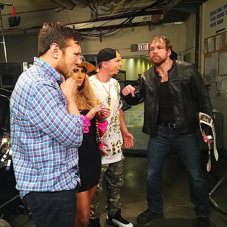Дин всё ещё ищет Корбина за кулисами, натыкается на Кармеллу и Джеймса Элсворта. Лунатик быкует на Кармеллу, та просит Элсворта, чтобы он вступился за нее, тот боится и что то мямлит. Подходит Дениал Брайан, Дин говорит, что у него большие проблемы с Корбином и просит Дениала найти его.