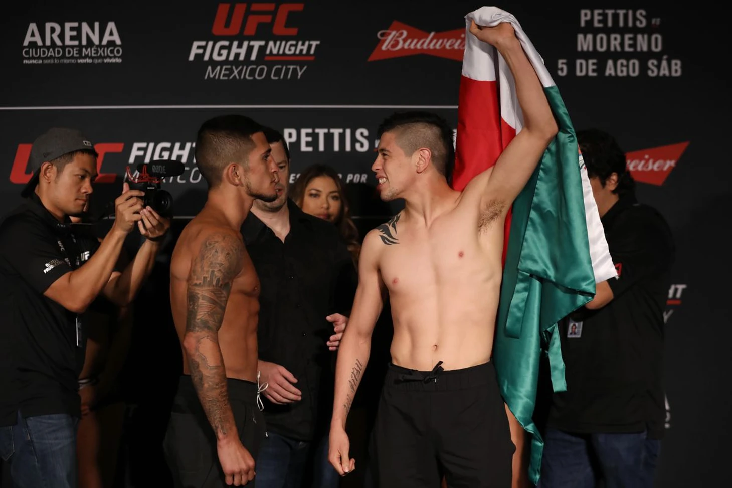 Морено имеет в карьере 3 поражения, но последнее произошло ещё тогда, когда ему было 19 лет. Сейчас же Брендону уже 23, и у него серия из 11 побед подряд. Он поразительно эффективен, но уж слишком предсказуем: Морено является чемпионом Мексики по БЖЖ и 10 из 14 побед завершил именно сдачей соперника. Ещё 3 раза дело дошло до вердикта судей, а единственный нокаут удался аж в 2013-м! И от этого главный бой становится ещё жарче: битва двух бойцов 1993 года рождения, сражение шестой и седьмой строчек рейтинга, столкновение ударника и борца. Выиграет тот, кто быстрее реализует свой план.