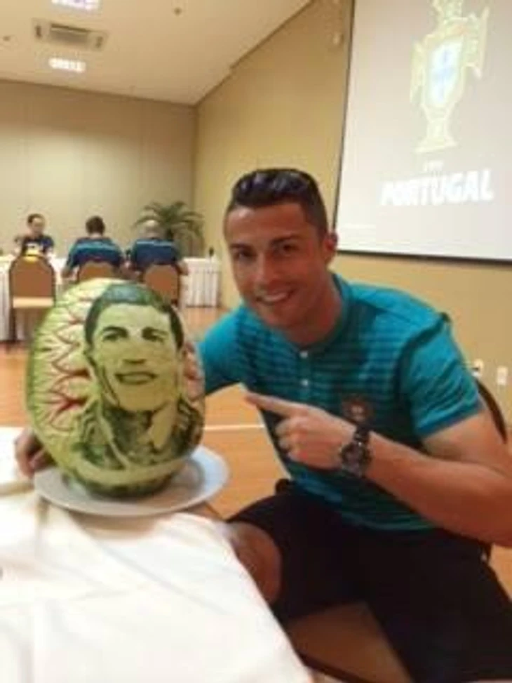 Известный шеф-повар подарил Жозе Альдо скульптуру из арбуза. Такие же есть у Криштиану Роналду и Неймара