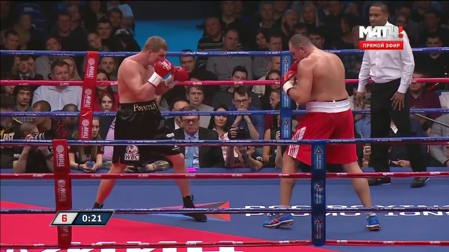 Рефери орёт ему, как-будто издалека "Ты готов?". Понимая, что боец его не слышит, он касается своим лбом головы Александра, чтобы быть максимально близко и повторяет свой вопрос. Эту фразу Поветкин уже не слышит, но понимает, и утвердительно качает головой, прижимая перчатки к голове.