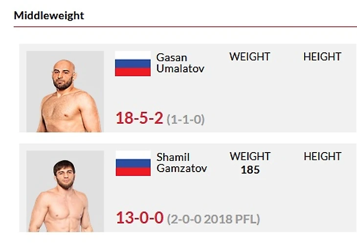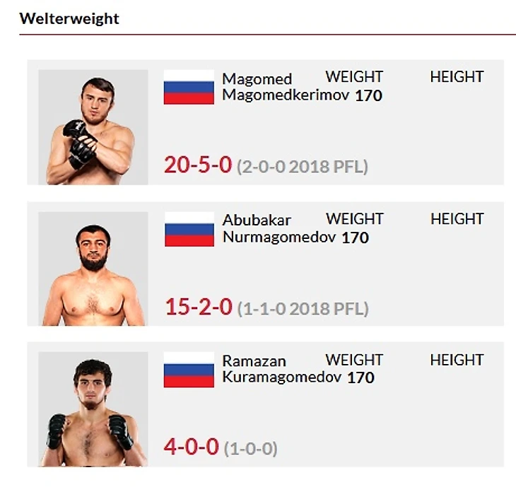 Как и в любой бойцовской лиге не обошлось без присутствия российских бойцов, наибольшее количество которых приходится на полутяжелый дивизион