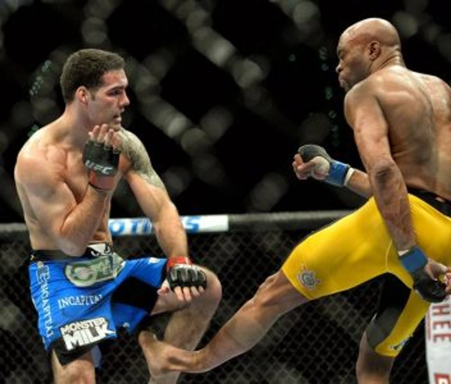 Андерсон Сильва – Крив Вейдман. Андерсон Сильва в первом поединке с Крисом свалял дурака слишком много позируя и был отправлен в нокаут после 10 защит титула подряд. Ко второй их схватке он подошёл серьёзно и даже привосходил Криса в ударной технике. Но в один из моментов он попытался пробить лоукик, а Вейдман в ответ вскинул ногу. В итоге нога Андерсона Сильвы согнулась в голени как верёвка, словно кости там и не было. Он рухнул на канвас с ужансыми криками. К счастью легендарный боец смог вернуться вскоре в ММА. И хотя он уже не был прежним собой, но все же показывал довольно хорошие выступления.