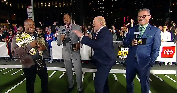 В перерыве матча между «Сан-Франциско» и «Оклендом» в студию FOX NFL пришел Даниэль Кормье. Прославленный боец будет отстаивать титул чемпиона в тяжелом весе в схватке с Дерриком Льюисом. Этот бой также будет показан на одном из каналов холдинга - FS1. Даниэль поговорил с командой аналитиков FOX NFL о своем поединке и предстоящем матче «Нью-Орлеана». Ниже стенограмма разговора. В эфире Майкл Стрэхан, Хауи Лонг и Терри Брэдшоу.