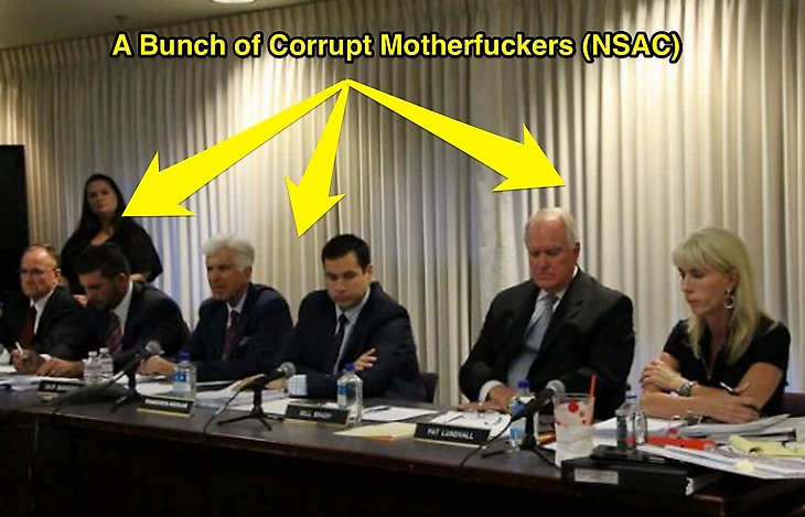 Для начала нужно разобраться и определить, что это за «комиссия» принимает решение, относительно судьбы бойцов. Nevada State Athletic Commission – регулирует все мероприятия, проводимые по боевым видам спорта, в пределах штата Невада, включая лицензирование и наблюдение за промоутерской деятельностью, бойцами, матчмэйкерами и тд. В непосредственные обязанности комиссии входит разбор дисциплинарных нарушений, произошедших на мероприятиях по боевым видам спорта, проводящихся в пределах штата Невада. Соответственно, на остальные штаты, действие, принятых комиссией решений, не распространяется.