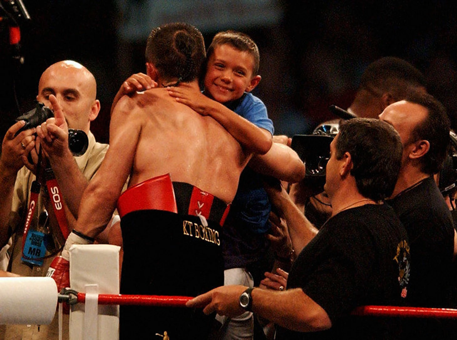 Это фото сделано в 2003 году: Костя Цзю обнимает сына Тимофея после очередной защиты титула.