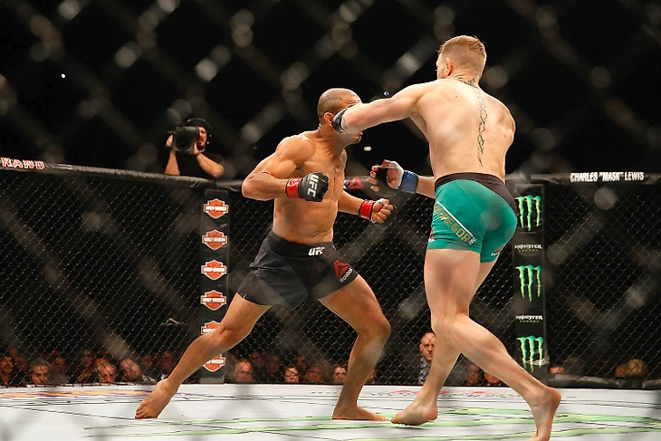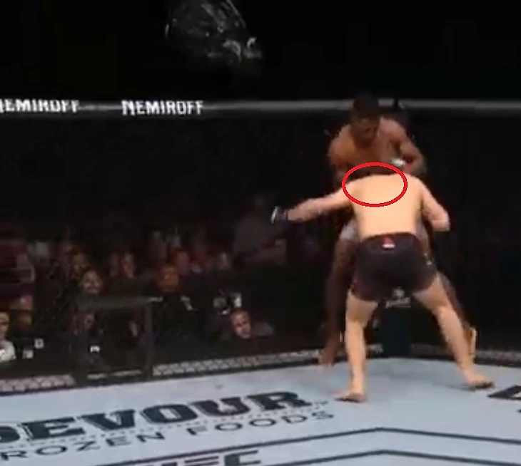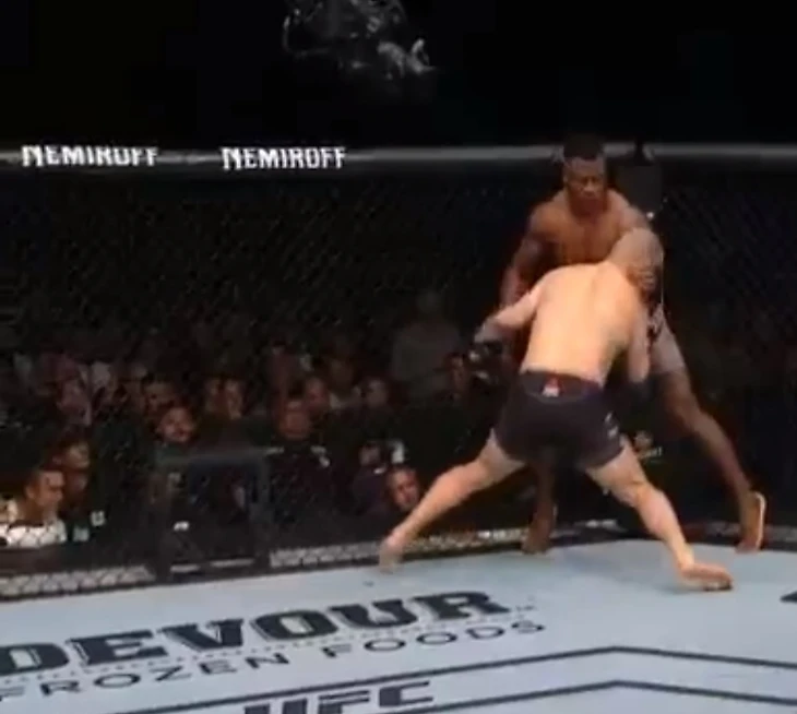Так что же случилось. Кейн и Нганну оказались в клинче, где Фрэнсис сумел нанести решающий удар. Ровно такой же удар нанес Конор в бою с Альдо. Вот удар Макгрегора: