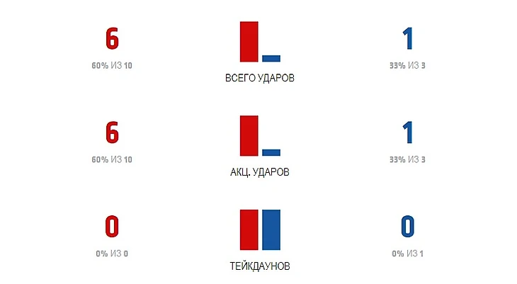 Нганну его добил. Чистый нокаут. Если же мы для интереса взглянем на статистику, то увидим следующее (красный цвет – Нганну, синий – Веласкес). Стоит ли что-то комментировать? Думаю, нет.