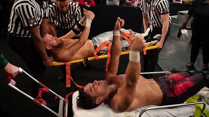 Жаль, безумно жаль, что все закончилось печальным образом. Вместо отличного завершения матча мы получили травму замечательного исполнителя. Со стороны, казалось, что у Дара обычный вывих, но как потом позже сказали источники из WWE, травма Дара намного серьезнее. Здоровья шотландцу и скорейшего возвращения.