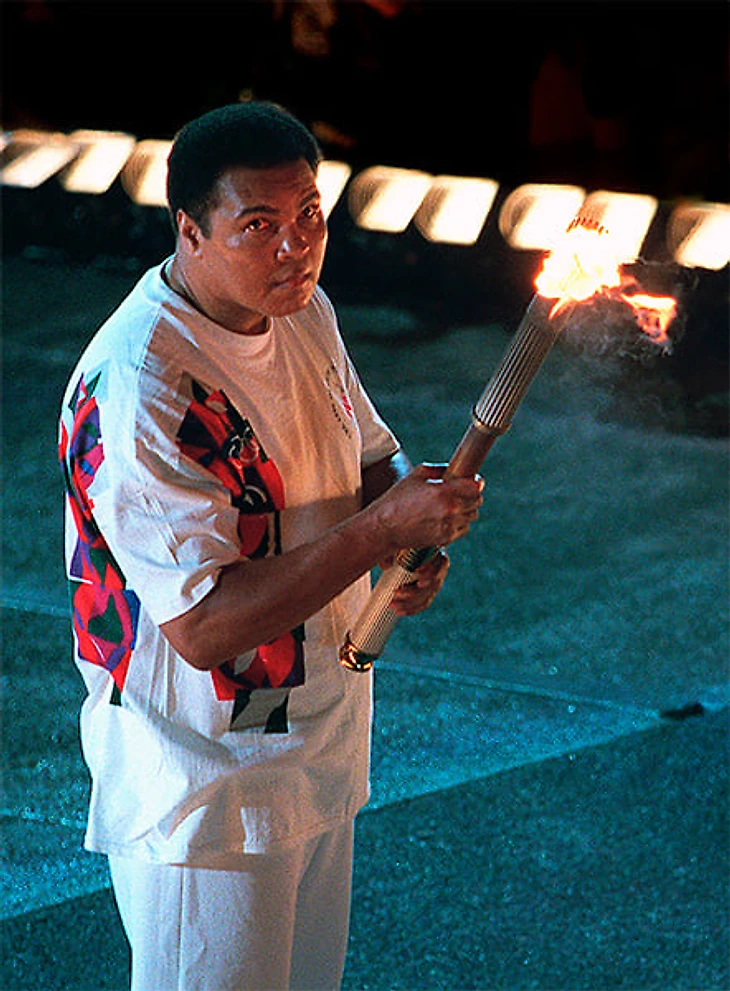 1996-й год, Олимпиада в Атланте. Али должен был зажигать огонь. Кадры с той торжественной церемонии пронзают: в одной руке у боксера факел, вторая трясется от болезни.