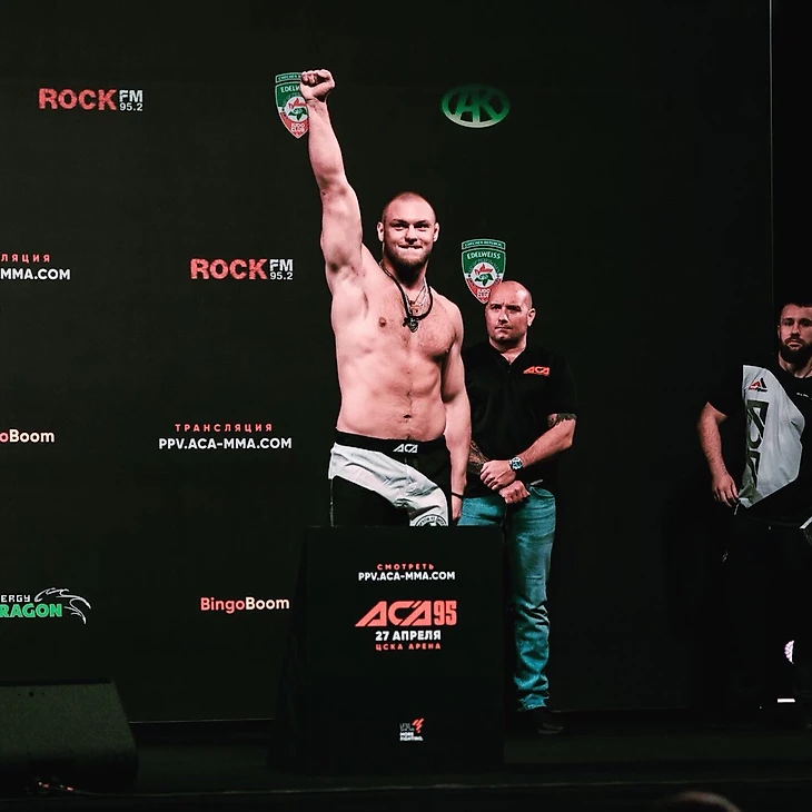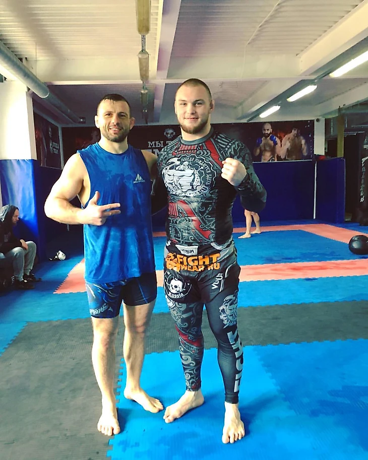 — Моя команда – «Стрела», легендарная команда с историей. В ней состоят такие сильные спортсмены, как Александр Волков, Гига Кухалашвили, Денис Канаков, Владимир Канунников, Эдуард Вартанян и другие. Тренеры – это Тарас Вячеславович Кияшко, Дмитрий Геннадьевич Селивахин. Владимир Владимир ещё помогает, это тренер по кикбоксингу. Наш босс – Иван Банников. У нас такой клан, вся работа идёт сообща. Мне очень нравится! Дружный коллектив, все настоящие профессионалы, знающие своё дело. Все просто сосредоточены максимально на победах. И это не может не радовать, потому что, когда ты работаешь вместе с единомышленниками, тебе даётся всё намного легче. Если что-то не получается – всеобщими усилиями, натиском вы всё возьмёте. Это классно! Хороший зал. К нам приходят обычно ребята тяжёленькие, приходит Михаил Владимирович Заяц – это, вообще, легенда у нас, он тоже в нашей команде. Все у нас – тяжеловесы, спарринги проходят по вторникам и пятницам – очень красивые бои можете увидеть. Никита Крылов, Валерий Мясников, Сергей Павлович, Евгений Ерохин – очень топовый состав бывает. Поэтому невозможно не расти, очень здоровая конкуренция.