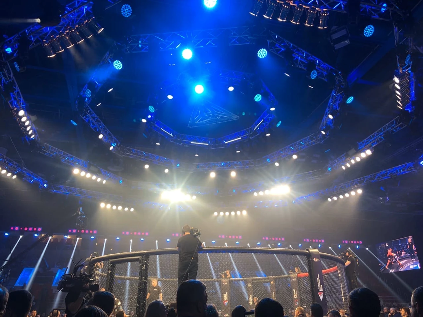 17:50 Всем привет из Екатеринбурга! У нас тут уже идут бои, скоро начнется мейнкард, а пока ловите атмосферную фотографию над стадионом: