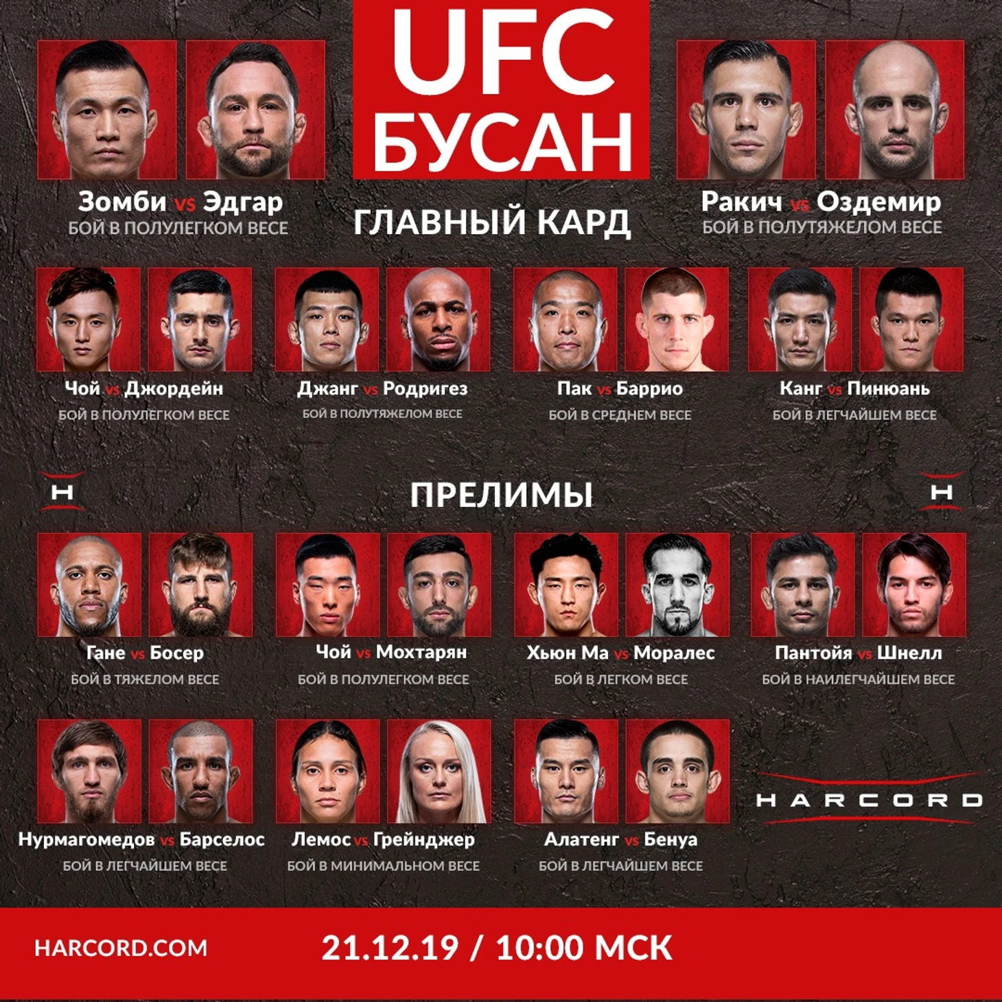 ФАЙТКАРД ТУРНИРА UFC FIGHT NIGHT 165: ЭДГАР ПРОТИВ КОРЕЙСКОГО ЗОМБИ
