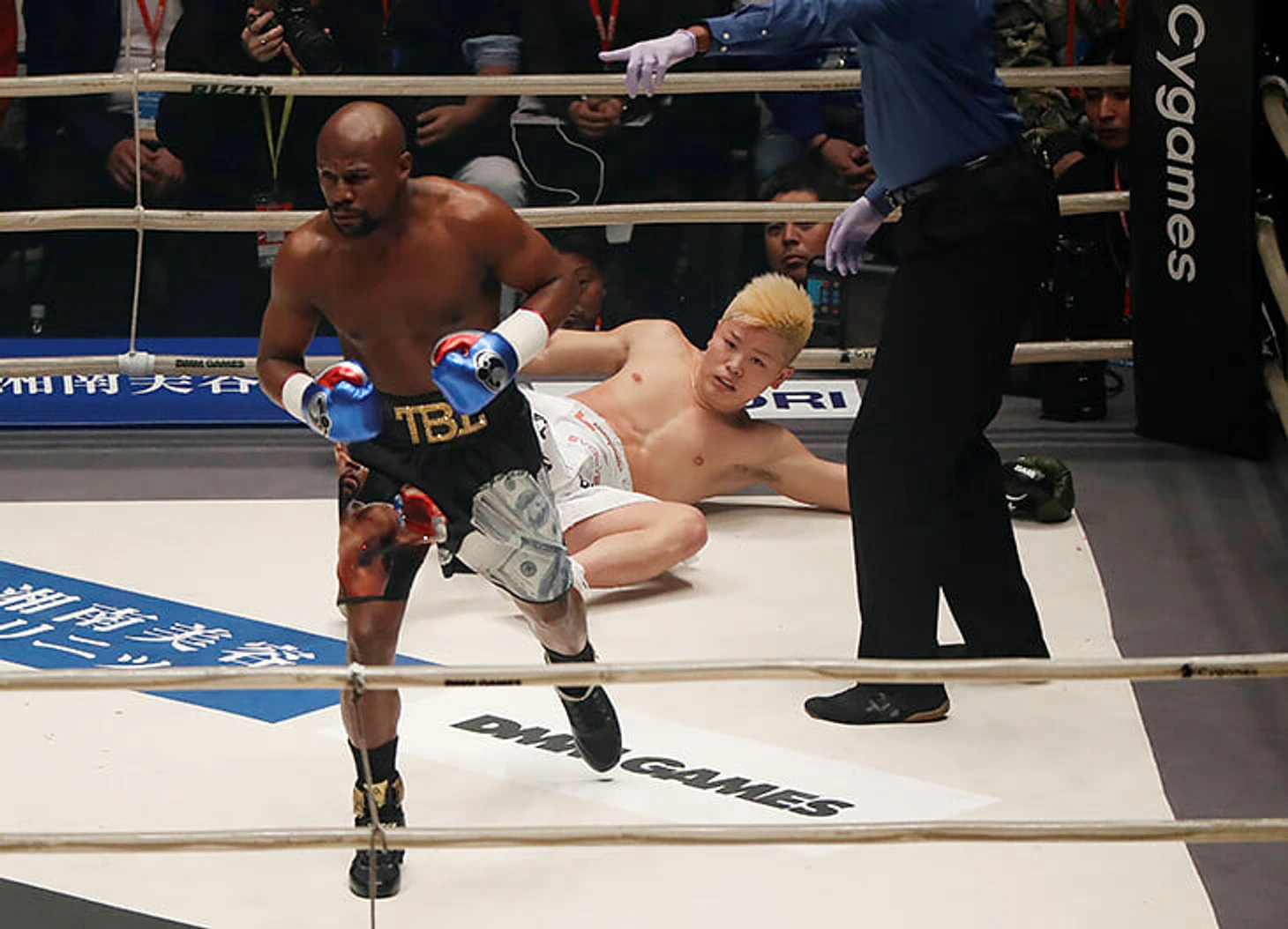 Флойд закрывал десятилетие не официальным поединком, а новогодним корпоративом в Японии в 2018-м. На закрытом шоу RIZIN он встретился с местной звездой кикбоксинга Тенсином Насукавой.