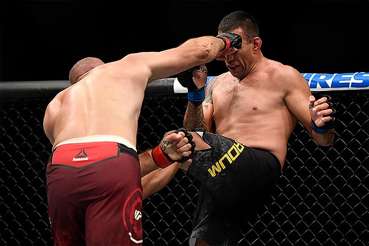 Несколько раз за первые 5 минут Вердум был на грани нокдауна, но чудом стоял. За это время Олейник нанес 112 (!!!) ударов, из которых точных – 71. Общее количество ударов для Олейника – рекордное в UFC: 42-летний Алексей никогда столько не бил в лучшем промоушене мира.