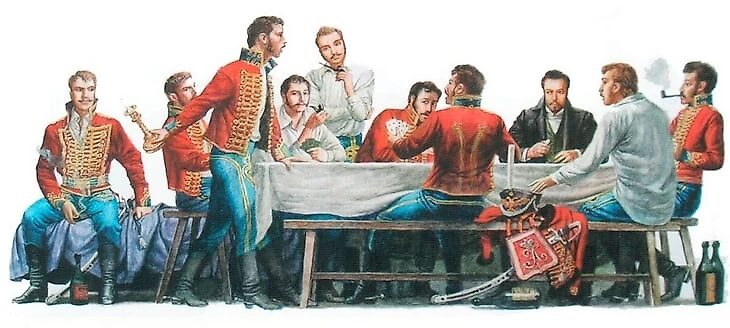 В последние годы учебы в Императорском царскосельском лицее Пушкин особо сдружился с офицерами лейб-гвардии (привилегированной части императорской армии) Гусарского полка. Александр Сергеевич очень хотел быть в кавалерии, но его отец – Сергей Львович – считал, что у семьи не хватит денег. Поэт не стал военным, но образу жизни как у элитных офицеров это не помешало.
