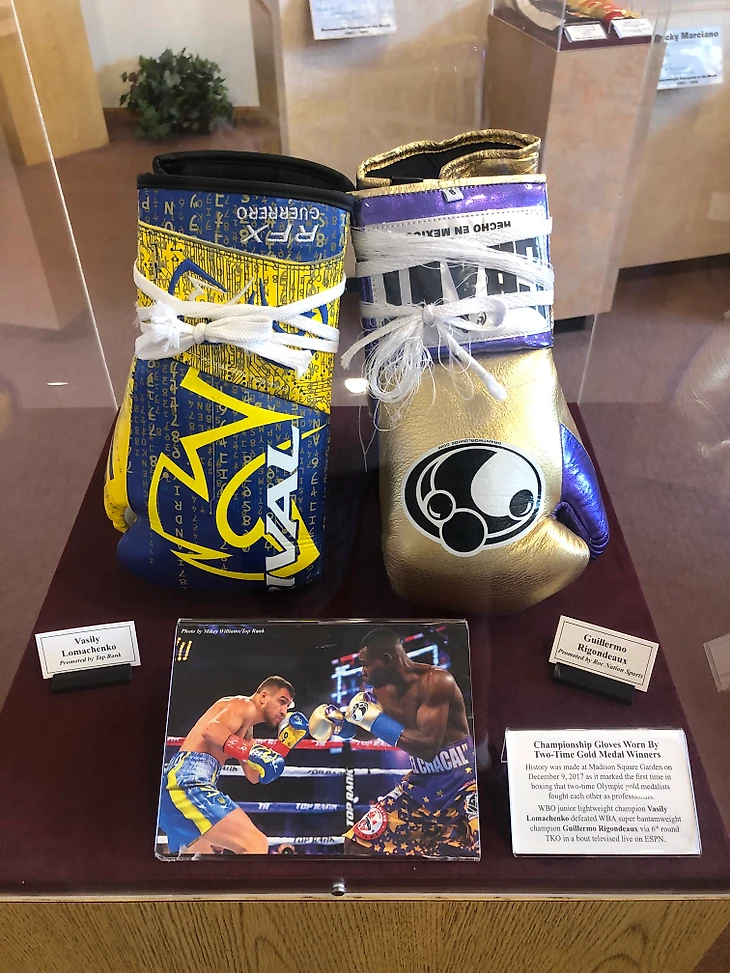 Боксерские перчатки, причем не только членов Зала славы, но и действующих боксеров.