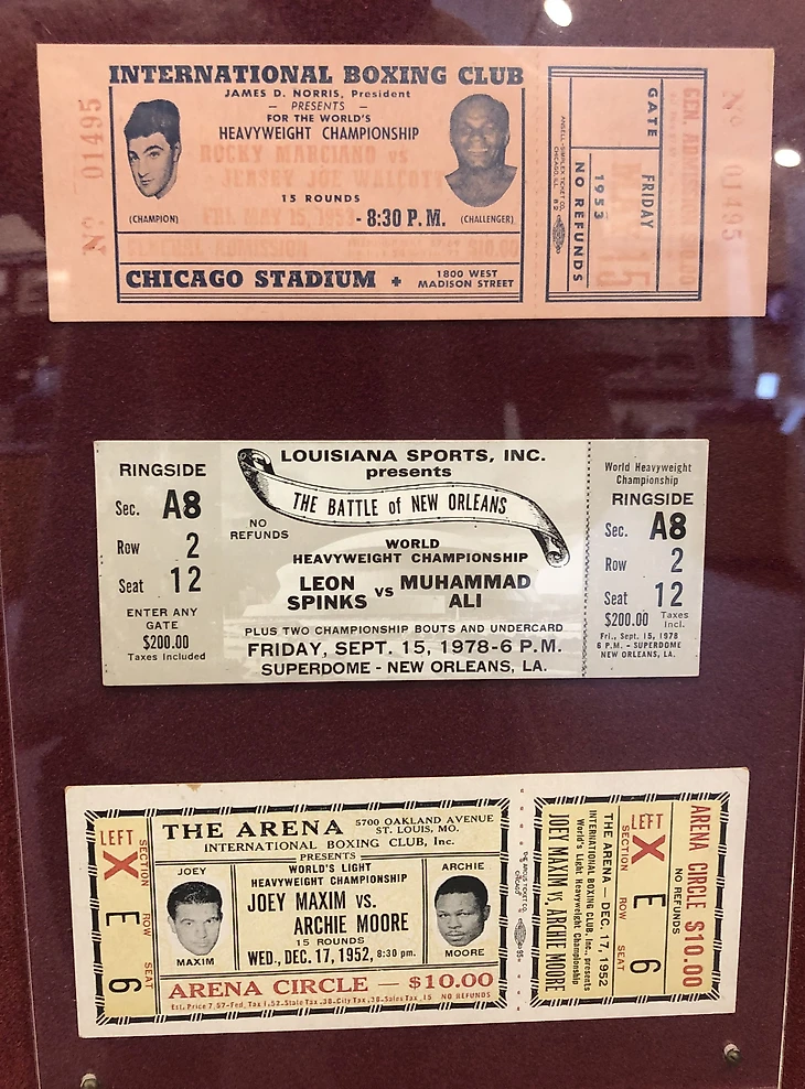 Также мое внимание привлекли билеты на боксерские поединки различных лет – было интересно исследовать их дизайн и изменения цены: так, в 1923 году на бой между Джеком Дэмпси и Томом Гиббонсом место у ринга стоило 50 долларов, а в 1992 году место на трибуне для просмотра боя между Эвандером Холифилдом и Риддиком Боу обходилось в 600 долларов.