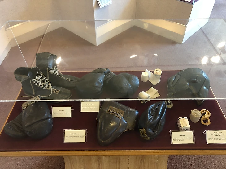 В музее находится много артефактов различных эпох. Тренировочная экипировка Харольда Джонсона – чемпиона мира в наилегчайшем весе 1961-1963 годов.