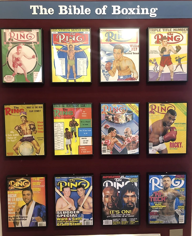 Отдельный стенд посвящен журналу The Ring и его обложкам. Издание делает превью к боям, анализирует их, составляет рейтинги боксеров. Также журнал имеет собственный титул чемпиона мира. Сейчас, например, действующими чемпионами мира в соответствующих категориях являются Василий Ломаченко, Сауль Альварес, Тайсон Фьюри.
