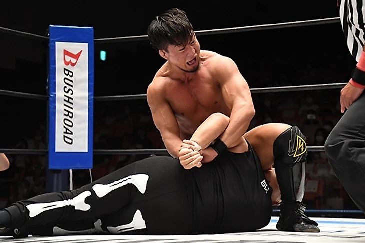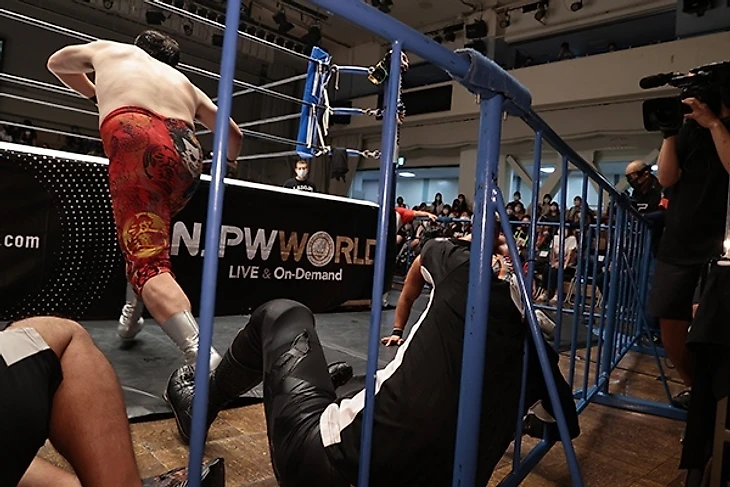 Правда в этот раз Эль подставил Такаги под Сузуки - у тех началась жёсткая ударная рубрика чопами и обмен ударами, Минору успел применить ещё и колени, отчего его полудержание не шибко сработало на ещё свежем "Драконе". Рубилово продолжилось и ситуация перетекла в опасные реверсы, один из них Такаги удачно провёл на Сузуки с помощью back-drop брейнбастера и отдал тэг Санаде. Однако красавчику LIdJ достался не Минору, а Доуки как очный оппонент - последний как мог пытался, но со второй попытки пробил на Санаде sit-out Gory Special для бэкслайда, что не сработало для удержания. Тут-то снова на помощь пришёл Деспи и полутяжи пытались быстро расправиться с "Ледяным Черепом". Это не сработало, ибо у Санады также есть товарищи, которые помогли оторваться по полной программе на Доуки, хотя Сузуки и Такаги снова успели столкнуться друг с другом. Будущие оппоненты данным обменом только распаливали настрой друг друга и никак не хотели уступать друг другу, остальные же участники матча также не скучали и сражались за контроль в матче. В один из моментов стычки Доуки чуть было не свернул Санаду, за что "Ледяной Череп" по полной отомстил своему оппоненту связкой из top-rope мунсолта с выходом на Skull End - от него новичок Suzuki-gun практически быстро сдался и LIdJ вышли даже в турнире.