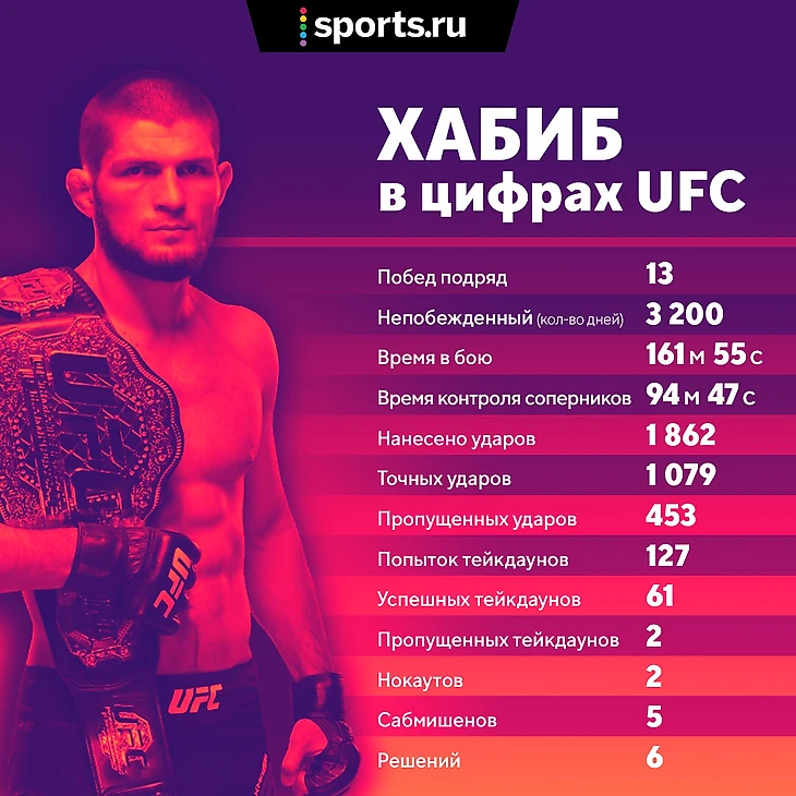 Лучше всего неоспоримую доминацию Хабиба в UFC покажут цифры. И вот они: