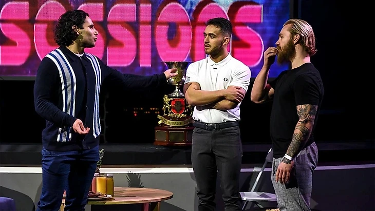 А у нас на очереди вторая потенциальная интересность вечера – первый выпуск ток-шоу Ноама Дара, Supernova Sessions. Причем в стилистике самого настоящего западного разговорного шоу. Супернова обещает, что его шоу станет классикой, что он будет задавать вопросы, которые все остальные боятся задавать, и что Supernova Sessions будут воспеты будущими поколениями. После стандартной ярмарки самолюбования Дар представил своего первого гостя – А-Кида. Испанец пришел не один – он принес с собой Кубок Наследия. Дар решил постебать Кида на тему того, что тот не из Соединенного Королевства, начав разговор с ним по-французски, тот парировал утверждением, что владеет английским лучше самого ведущего, а также не забыл о том факте, что он одолел Дара в полуфинале турнира за упомянутый выше кубок.