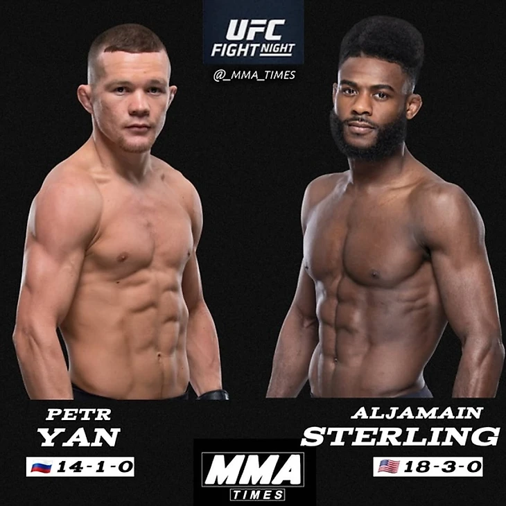 Их бой с Яном является одной из самых ярких афиш месяца, заполненного титульными поединками. Петр Ян обладает превосходными навыками бокса, но также вполне способен побороться. Стерлинг является разносторонне развитым бойцом. Его отличительными чертами являются хитрость, пластичность и превосходное джиу-джитсу, благодаря которому он задушил, вероятно, следующего претендента Кори Сентхагена в самом начале боя.