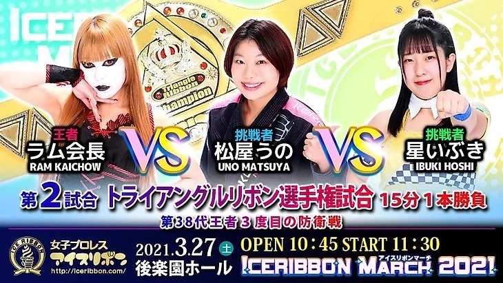 2) Рам Кайчо против Уно Матсуи против Ибуки Хоши - титульный поединок за чемпионство Triangle Ribbon.