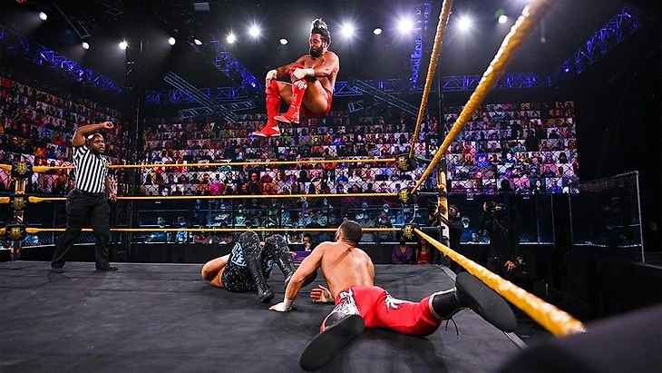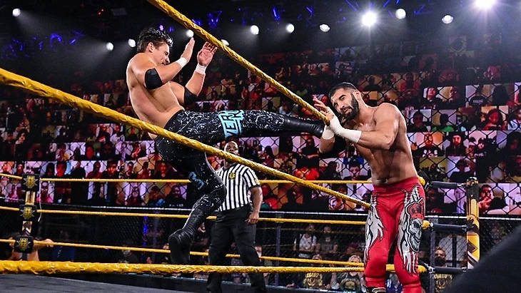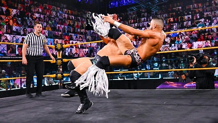 — "Напоминалки от NXT": 3 дня назад в мэйн-ивенте выпуска состоялся большой командник 3 на 3 между Legado del Fantasma в полном составе и MSK с Кушидой с другой стороны. Бой выдался богатым на интригу, отчасти из-за уже имеющихся конфликтов между Уайлд-Мендоза и MSK, а также отдельно у Кушиды с Эскобаром. Победу вырвали себе именно Legado del Fantasma, показывая что они готовы не просто вернуть утраченное, но и увеличить свой фонд трофеев в 2 раза.