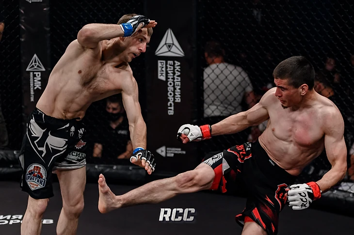 В шестом поединке турнира сошлись представители ММА. Равиль Коробов (Тобольск, 7-0) встречался с Алексеем Инденко (Хабаровск, 7-1) в категории до 65,8 кг.