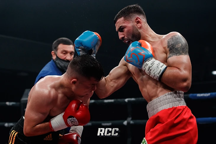 В восьмой паре вечера RCC Boxing Promotion на ринге сошлись Жора Амазарян (Гюмри, Армения, 10-3-2) и Шерзод Абдураззоков (Рапкон, Узбекистан, 2-2-0). Поединок состоялся в рамках весовой категории до 59 кг.