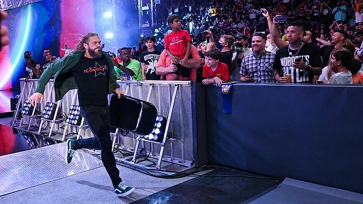 Роллинс решил не упускать момент и продолжил избивать Сезаро - да так, будто их противостояние никогда и не завершалось вообще. Сет даже схватился за другой стул для продолжения, успев пригрозить рефери. Правда "Архитектору" был нужен не сам стул, а стальной прут - чтобы повторить трюк Эджа с кроссфейсом, который тот проводил на Романе Рейнсе во время их противостояния. И как оказалось в итоге, Сет таким образом вынуждал Эджа выйти в ринг к нему - последний никак не реагировал и Роллинс был готов продолжать пытки Сезаро с использованием стульев. Дошло даже до попытки повторить угрозу из 2014 года, но уже на Сезаро - и это всё-таки сработало: Эдж выбежал на ринг со стулом в руках и Сет покинул ринг с улыбкой и языком из-зо рта. Оба оппортуниста проводили друг друга взглядами, но Сет покинул арену через зрительские ряды, а Эдж помог Сезаро прийти в чувство.