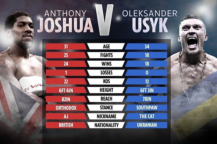 У Александра достаточно скорости и умений в ринге, чтобы доставить серьезную конкуренцию в ринге. Полагаться на свой удар и попытку прихлопнуть Усика, как муху - будет огромной ошибкой. Против боксера с такими умениями надо обязательно иметь план на бой. А лучше даже два плана, на всякий случай. И британец это понимает, поэтому подошел к бою максимально “подсушенным“ и вероятно настроенным пройти всю дистанцию. Смотря на Джошуа даже складывается ощущение будто это он идет в весовую категорию к Усику, а не наоборот.