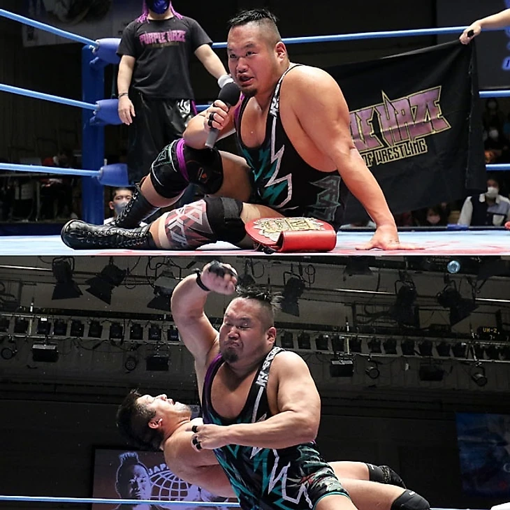 Победитель: Шигехиро Ириэ (титульная смена) (как указали комментаторы - Шиге победил после двух Beast Bomber; по сути это тот же приём, который использует Шинго Такаги под названием Pumping Bomber)