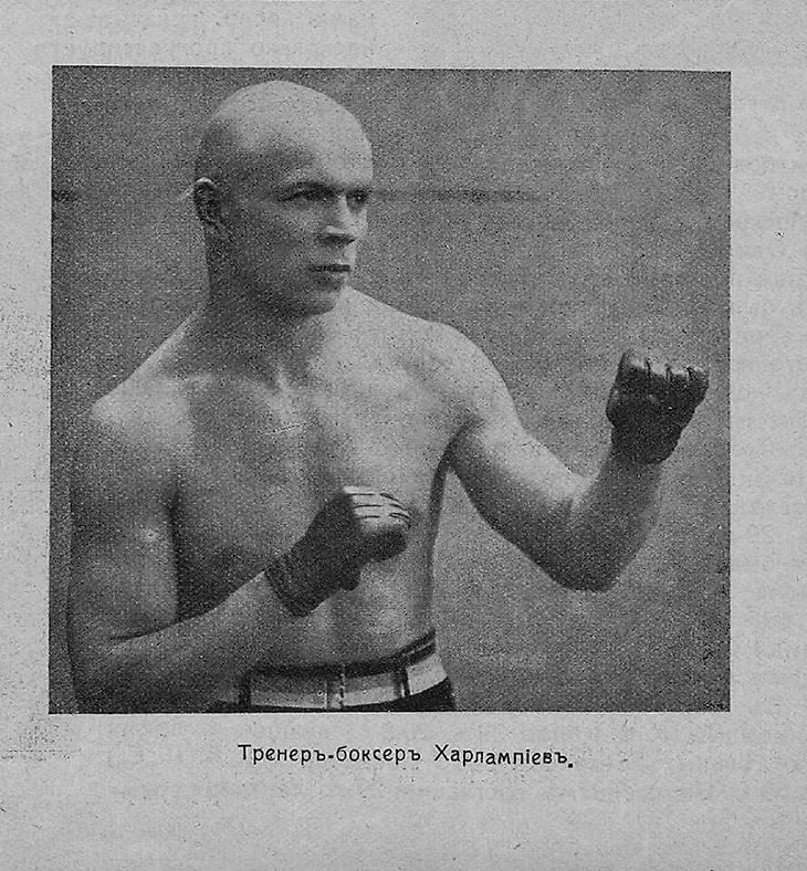 Харлампиев считается пионером бокса в пост революционной России. Путь от молодого атлета до первоклассного специалиста был крайне тернист. Во время учебы в гимназии Аркадий устроился на работу в столичный цирк. Он хотел накопить сбережения на учебу в Высшем Художественном Училище. В Царской России цирк был местом проведения бойцовских шоу. Особой популярностью среди зрителей пользовались поединки «французского стиля», современная классическая борьба.