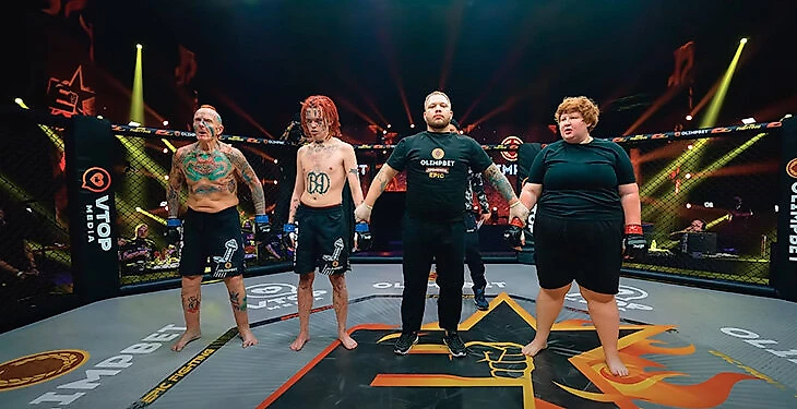 На канале промоушена в ютубе вышло уже три турнира – и столько же пресс-конференций. Трудно сказать, что из этого зрелищнее, ведь участники начинают драться еще до выхода в клетку. Выпуски Epic Fighting набирают миллионы просмотров и влетают в тренды ютуба. А недавно там прошел, возможно, самый безумный бой в истории ММА: пенсионер и его внук-рэпер подрались против 130-килограммовой девушки.